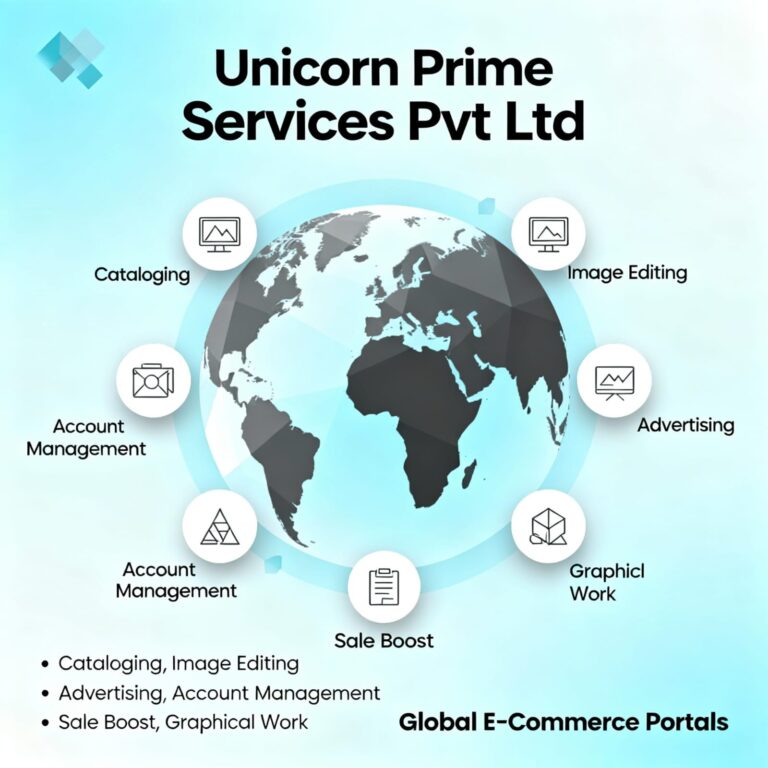 At Unicorn Prime Services Pvt. Ltd., we understand that each marketplace has its own rules, buyer expectations, strengths, and challenges. We offer tailored, end-to-end support for sellers on the world’s most important eCommerce portals — from creative assets and product listing to ad campaigns, account oversight, and growth optimization.